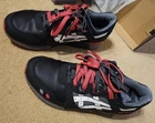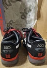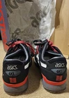 The Asics Foot Locker x Anderson Bluu x Gel Lyte 3 G.I. Joe Snake Eyes Mens shoes in size 9 are a unique and stylized sneaker design featuring elements from the popular GI Joe franchise. The lace-up closure, gel cushioning, and breathable upper material provide comfort and support for various activities such as typing, work, running, and casual wear. The black color with speckled reflective details and nostalgic themes make this shoe a standout choice for fans of Hasbro, Anderson Bluu, and Asics. With a retro design and iconic characters like Snake Eyes and Zartan, these sneakers are a must-have for collectors and enthusiasts alike. *Box included*