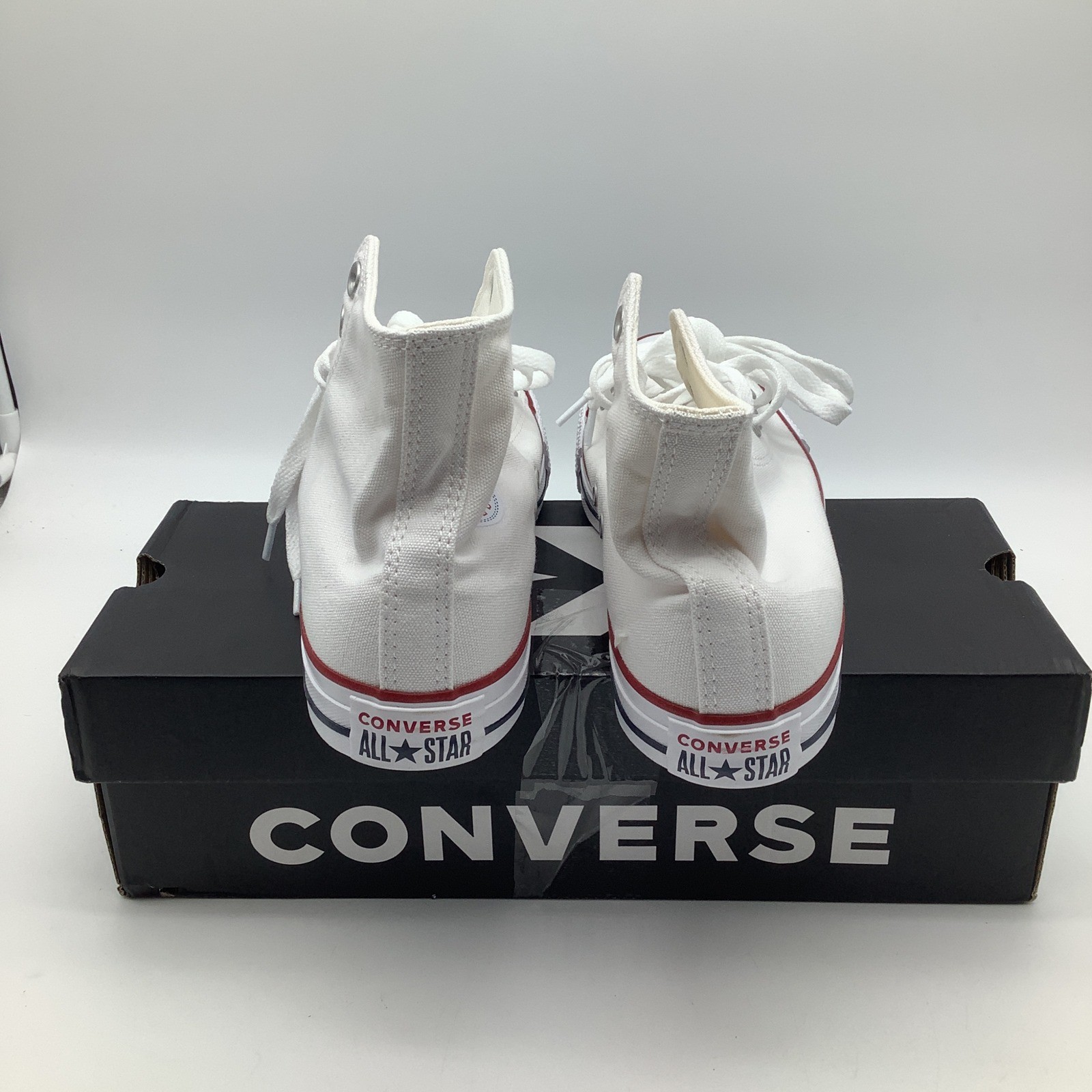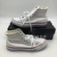 The Converse Chuck Taylor All Star High Top Optical White sneakers in size 9 for women are a classic and timeless style with a high top shoe shaft. The iconic Converse brand, optical white color, and signature Chuck Taylor All Star model make these athletic shoes a versatile and stylish choice for everyday wear. These sneakers are perfect for those looking for a comfortable and durable option that combines both fashion and functionality in their footwear.