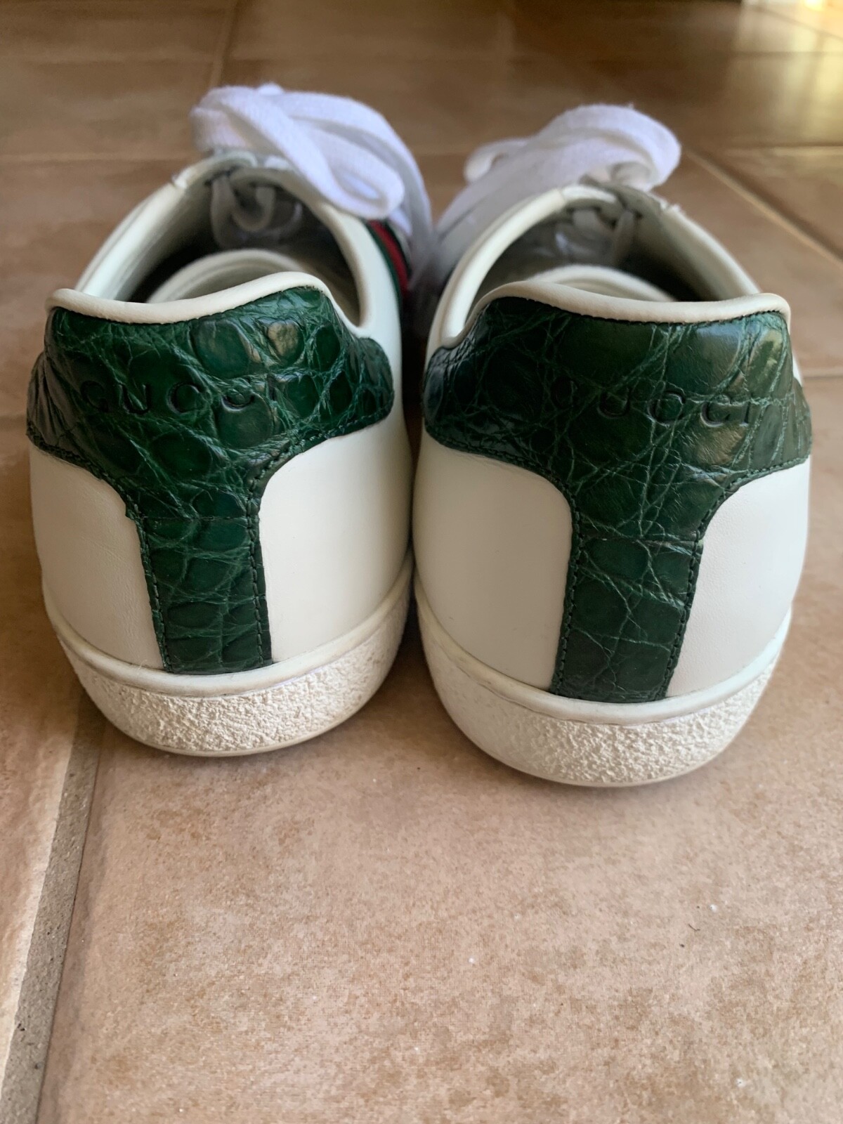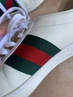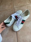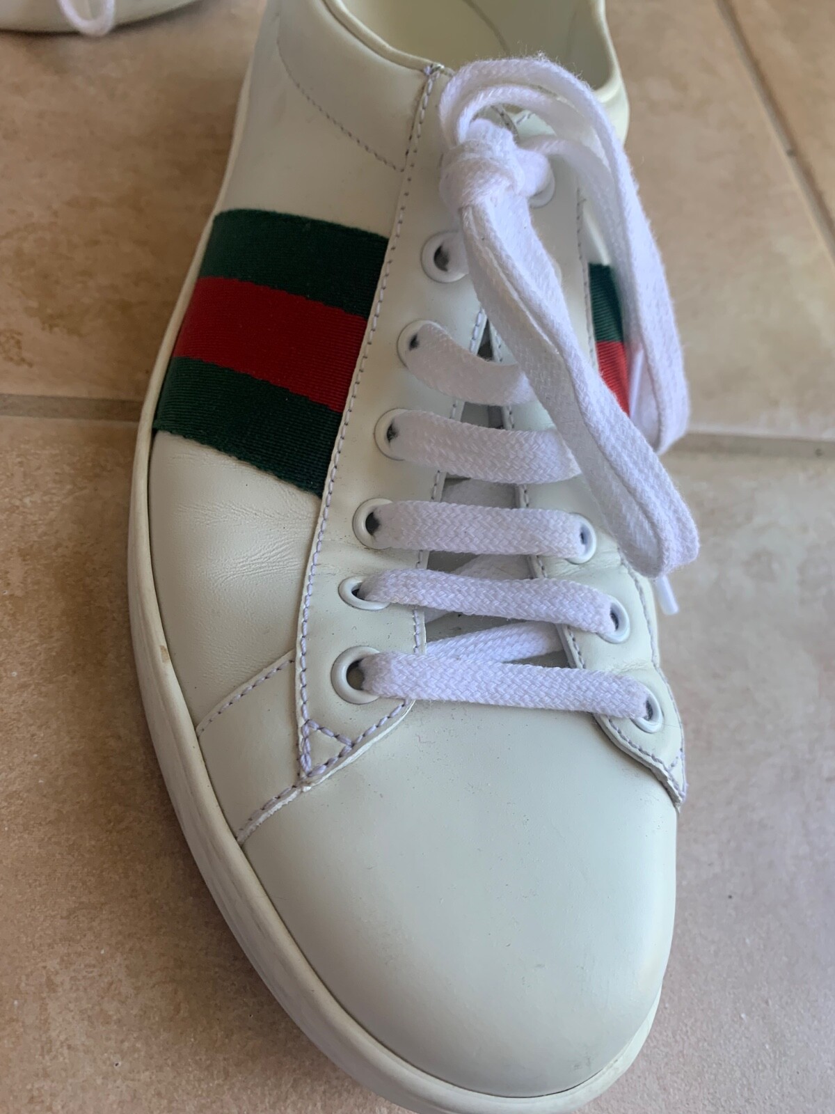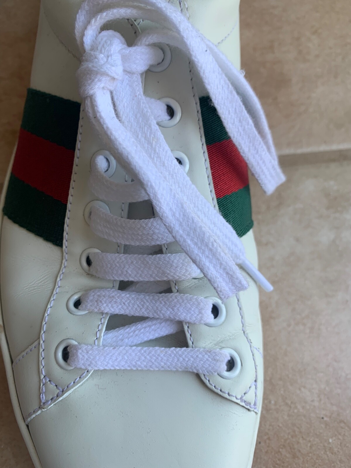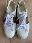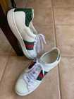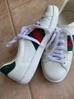 Step into luxury with the Gucci Ace sneakers, a perfect blend of style and comfort. These size 9 kicks feature the iconic green and red stripes, complemented by crisp white laces that add a touch of classic cool to any outfit. The sneaker's durable construction and athletic build make them ideal for both active days and laid-back evenings.Crafted for the discerning woman, these Gucci Ace sneakers boast a wide shoe width for a comfortable fit. The distinctive striped pattern and the sneaker's place within the esteemed Gucci Ace product line mark them as a must-have item for any fashion-forward collection. Elevate your look with these statement sneakers that effortlessly combine high fashion with functionality.