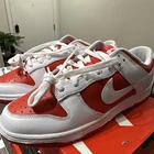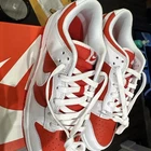 Elevate your sneaker game with these Nike Dunk Low Championship Red sneakers. Designed with a stylish low top shoe shaft, these sneakers feature a vibrant red leather upper material that is sure to turn heads. The Nike Dunk model is a classic that has been around for years, and with its athletic style, it is perfect for both casual and active wear. These sneakers come in a size 9 and are a part of the Nike Dunk product line. The style code for this pair of sneakers is DD1391-600. Whether you're a collector or just looking for a new pair of stylish sneakers, these Nike Dunk Low Championship Red sneakers are a great choice.