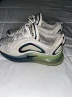 This Nike Air Max 720 Bubble Pack sneaker in size 9.5 features a Summit White/Multi-Color/Platinum Tint colorway with a unique bubble-inspired design. Part of the Nike Air Max product line, this 2020 release showcases a stylish and athletic look perfect for men. The model code CT5229-100, release date of March 1, 2020, and the nickname "Bubble Pack" add to the appeal of this pre-owned shoe. Had these since 2020 wore them for about a year and never wore them again no tags no box