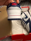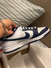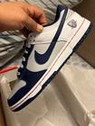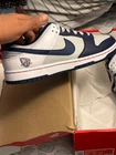 Introducing the Nike NBA x Dunk EMB Low 75th Anniversary sneakers, featuring the Brooklyn Nets colorway. These stylish sneakers are perfect for any athletic occasion and are designed with a low top shoe shaft style. The upper material is made of high-quality leather, ensuring durability and comfort.The sneakers come in a classic white color and feature the iconic Nike Dunk style code DD3363-001. They are available in men's US shoe size 9.5 and are part of the Nike Dunk product line. These sneakers are ideal for any fan of the Brooklyn Nets and are a must-have for any sneaker collection.