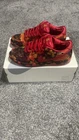 The Nike Dunk SB Low Poppy Field in size 9.5 is a collaboration shoe with "The Wizard of Oz" theme featuring a striking red color representing the iconic poppy fields from the movie. This sneaker is part of the Nike Dunk product line and is designed with a low top shaft style and textile upper material for a classic athletic look. The model boasts the Nike brand's quality and style, making it a desirable choice for sneaker enthusiasts and fans of the beloved movie.