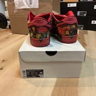Elevate your sneaker game with these Nike Dunk SB low top sneakers. The vibrant red color and unique design inspired by The Wizard of Oz make these shoes a must-have for any fan of the classic movie. The low top style and textile upper material provide a comfortable fit that's perfect for everyday wear. These Nike Dunk SB sneakers are the perfect addition to any sneaker collection. With a release year of 2024, these shoes are brand new and ready to be worn. The style code for this shoe is FZ1291-600 and it is available in a US shoe size of 9.5. Don't miss your chance to own these limited edition sneakers.