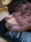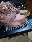 Introducing the Nike Travis Scott x Air Trainer 1 SP Chocolate sneakers, perfect for any athletic occasion. These sneakers feature a stylish chocolate, rust pink, and archaeo brown with a textile upper material to ensure comfort and durability. The sneakers have a US shoe size of 9.5 and are designed for men. The Nike Air Trainer 1 model is a classic, and this collaboration with Travis Scott adds a unique touch to style.