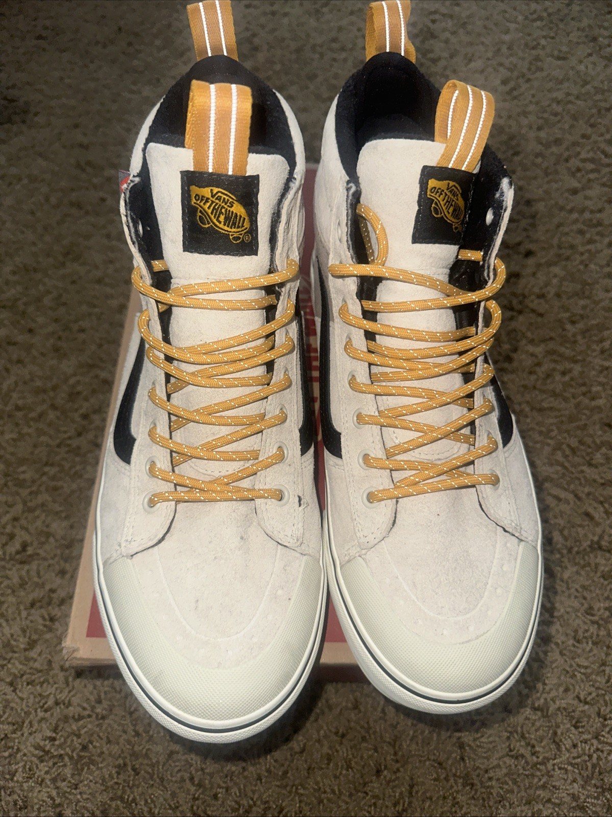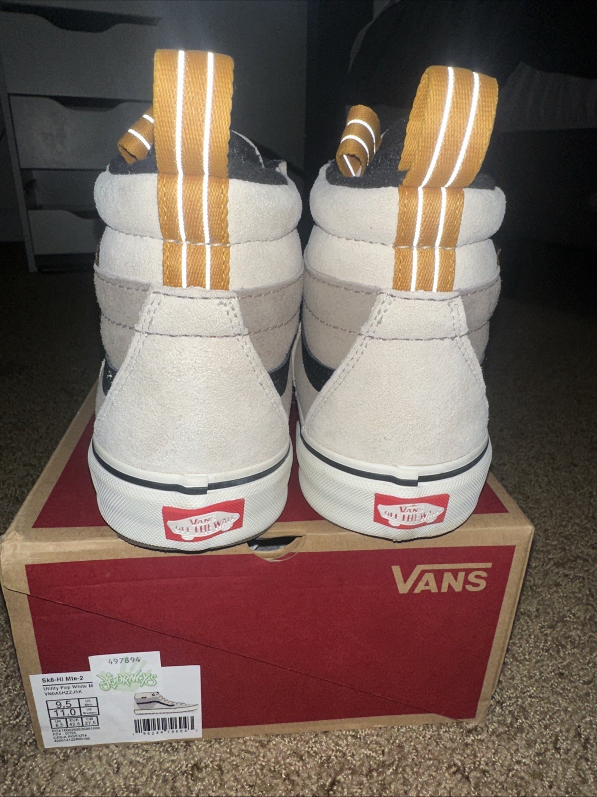 This VANS SK8 sneaker in size 8.5 features a High Top Shoe Shaft Style in an Ivory colorway with a Pop character design. It is designed for Men's athletic wear, specifically for boxing, with a suede Upper Material and a release year of 2022. The model, VANS Size 9.5MTE-2 High Utility Pop, offers a unique style code (VN0A5HZZJ5K) and is part of the VANS Sk8 product line. This versatile and stylish shoe is ideal for those looking for both performance and fashion in their footwear.