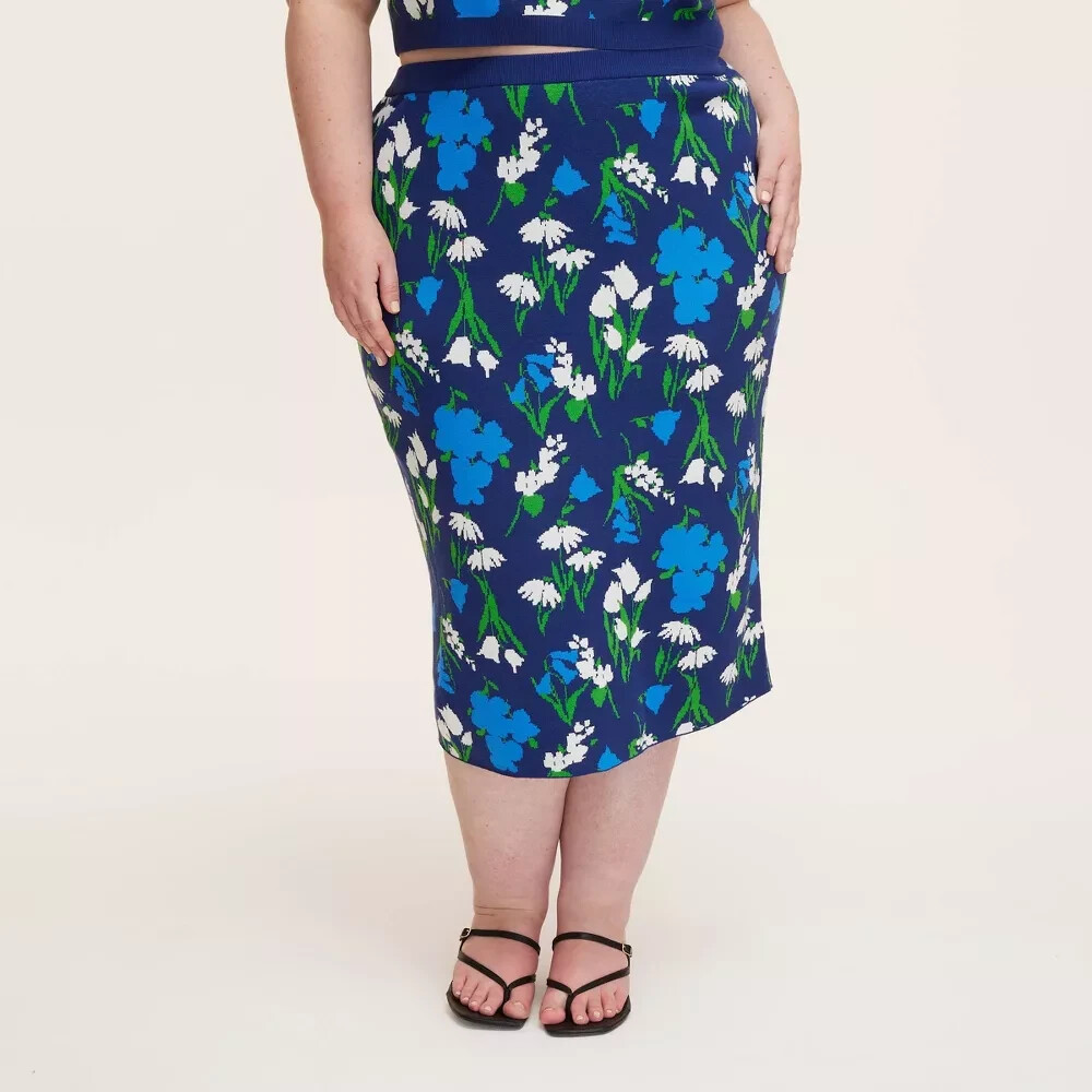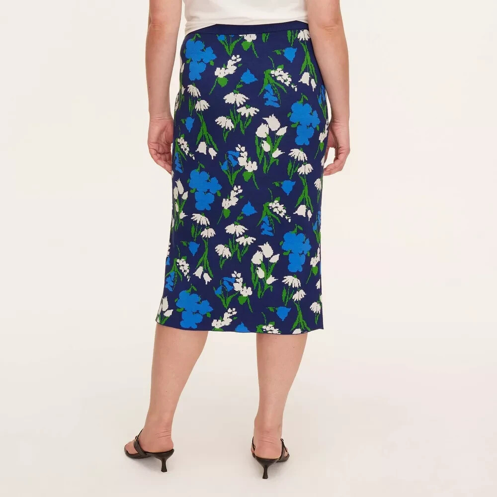 Fit & style Model wears size L and is 5'11" - Model wears size 1X and is 5'9" Sweater midi skirt Mixed floral pattern in blue, green, and white Jacquard-knit fabric Mid rise Elastic waistband Step out in style with this Mixed Floral Sweater Midi Skirt from kate spade new york x Target. Constructed from jacquard-knit fabric, this midi skirt features a mixed floral pattern in blue, green, and white. Plus, this mid-rise skirt also has an elastic waistband for a comfortable, stay-put fit. Known for redefining the handbag, kate spade new york has become a full lifestyle brand devoted to turning everyday moments into iconic celebrations. Now, you can toast togetherness and host the ultimate spring party with this limited-edition collection from kate spade new york and Target that’s designed to dazzle every guest on your list. Sizing: Womens Material: 70% Viscose, 30% Recycled Polyester Fit: Regular Fit Closure Style: Full Waistband Elastic Rise: Mid Rise Fabric Name: Jacquard Knit Garment Length: Midi Total Garment Length: 28 Inches Garment Details: Full Waistband Elastic, No Pocket Fabric Weight Type: Lightweight Fabric Care and Cleaning: Machine Wash, Line Dry or Lay Flat to Dry Street Date: April 12, 2025