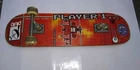 Skateboard deck Video Game graphic w one set Trucks. It is a good deck, but no one here can recall the brand. One set of trucks is missing most of it, see pics for one that is there and what you will need for the incomplete one. Board has some chips and scuffs as shown. This came from a high dollar skateboard shop back in the day. Thanks