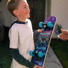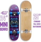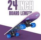 Ideal for beginners - Ages 5-8, supports riders up to 121lbs. Specifically designed for kids learning to skateboard. Perfect beginner board for small boys & girls! 24-inch skateboards for kids Light and durable - These 24 inches long Beginner skateboards at 6 inches wide are easy to carry and can take a beating. These cruiser skateboards for kids arrive assembled. Versatile mini skateboards- boys, girls, even dogs! Cater to a wide range of users, ensuring fun for everyone in the family. Even your pup can learn a new trick and ride these mini skateboards. Authentic design - kids beginner skateboard - 6" Aluminium trucks, 54mm Wheels, & ABEC-7 Bearings. Shorter cruiser board deck for better control and balance, ideal for newbies' first skateboard. Product Description Mini 24 Inch Skateboard This is NOT a full length skateboard. Please take note of these dimensions prior to purchasing. Dimensions These boards are 24" long, 6" wide, and 4" tall. Built for Ages 5-9 Years Old This 24 inch mini skateboard is only recommended for children aged 5 to 9 years old who are just learning to ride. Made for Everyone These boards are perfect for any new riders - boys, girls, and even pets!