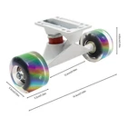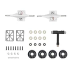 Details Riser Pads: Riser Pads can lift your deck and avoid wheel bite, ensuring safety during skating. T Tool: It can be used to adjust kingpins, wheels, base plate bolts, and trucks. Application It is suitable for highways, concrete roads, plastic runways, and other smooth surface roads. You can use it as a walking tool, or use it for some tricks. It fits well in standard double-kick concave decks. Specifications Color: White Material: Aluminum Alloy, PU, Metal Assembly Required: Yes Suitable Board Type: Maple Board Surface Treatment: Baking Varnish Wheels Type: Flashing Wheels Light Source: LED(Included) Durometer Hardness: 85A Product Overall Size(Not Including Wheels): 194*48.5mm/7.63*1.9inch Truck Length: 126mm/5inch Skateboard Trucks Combo Set Cruisers Wheels W/Trucks Skateboard Trucks&Wheel Set Description This skateboard truck kit is made of premium aluminum alloy, PU, and metal, making it sturdy and durable. Its flash wheels with gorgeous light during skateboarding will make you the center of attention instantly. 85A hardness makes wheels roll smoothly on most surfaces, which makes it a great choice for skateboarding and showing off your skills on the street. It's also very easy to install, both beginners and long-time skaters can use it to DIY a new skateboard or upgrade your favorite skateboard. Key Features Sturdy&Durable: High-quality aluminum alloy trucks are corrosion-resistant , sturdy and durable, making sliding less vibration and more stable. Complete Set: Trucks and wheels are all included in the kit, so all you need is to add one of the appropriate boards to make a complete skateboard. Excellent Workmanship: PU infusion featuring superior shock-absorbing, flexible steering, and high stability. Its baking-varnished surface gives the product excellent rust resistance and extends its service life. Stable&Fast: 85A hardness wheels and metal high-precision bearings can provide your skateboard good grip and stability when the skateboard is traveling at high speeds. Effortless Installation: It comes with the appropriate mounting tools, so even a beginner will be able to install it easily. Flashing Wheels: PU wear-resistant wheels emit brilliant light during skateboarding, and their rolling colorful lines can make you stand out in the vast crowd! Ideal Gift: It is an ideal Halloween, Christmas, New Year, Thanksgiving, Easter gift for your children, friends, and loved ones. Customer Service: We aim to provide quality products and services . If you have any problems, please feel free to contact us. We will reply and solve the problem for you as soon as possible. Details Riser Pads: Riser Pads can lift your deck and avoid wheel bite, ensuring safety during skating. T Tool: It can be used to adjust kingpins, wheels, base plate bolts, and trucks. Application It is suitable for highways, concrete roads, plastic runways, and other smooth surface roads. You can use it as a walking tool, or use it for some tricks. It fits well in standard double-kick concave decks. Specifications Color: White Material: Aluminum Alloy, PU, Metal Assembly Required: Yes Suitable Board Type: Maple Board Surface Treatment: Baking Varnish Wheels Type: Flashing Wheels Light Source: LED(Included) Durometer Hardness: 85A Product Overall Size(Not Including Wheels): 194*48.5mm/7.63*1.9inch Truck Length: 126mm/5inch Wheel Size(D*H): 52*32mm/2.04*1.25inch Packaging Size: 21*17*10cm/8.26*6.69*3.93inch Gross Weight: 1.23kg/2.71lbs Package Included 2* Skateboard Trucks 2* Riser Pads 1* T-Tool 4* Wheels All Assembly Required Accessories Notes Please check the size carefully before ordering. Please lubricate the wheels and bearings for the first time skating if you want to roll faster. Please note that bearings need to be used for a period of time to rotate more smoothly and get a better performance. Please note that it is not suitable for uneven or muddy roads. Please ensure enough clearance between the deck and the wheel to avoid wheel bite. Please allow the slight color difference caused by the shooting light and 1-3cm error due to manual measurement, and make sure you do not mind before you order. Payment Delivery details Terms of sales About us Contact us Payment We accept ebay payment 。 Fees such as import duties, taxes are not included in the item price or shipping costs. These charges are the buyer's responsibility. Delivery details Shipping: 2-9 working days to: USA Terms of sales We maintain high standards of excellence and strive for hundred percent customer satisfaction. Feedback is very important to us. We hope that you contact us immediately before you give neutral or negative feedback, so that we can address your concerns. It is impossible to address issues if we do not know about them! About us Your satis faction is our ultimate goal. We work hard to earn your trust and future business. Our certified technicians have tested each item before shipping. The unit comes with 1 year limited warranty on all manufacturing defects. a) If you receive a defective item, you may return it or ask for a discount. Please contact us within 14 days after you receive the package. b) What you returned must be intact and in its original packaging as re? u. Customer is responsible for shipping costs of the returned item. c) We will cover the cost of shipping back t with the shipping rate indicated in the registration page. We will send you a new unit or refund the full payment you paid. Thank you. Contact us Business Hour Business Hour: Monday To Friday: 8:30 AM to 5:00 PM (Beijing China time) Due to time zones, our reply to your questions may not be immediately. But within above working time, we will reply your email within 24 hours. If it's non-workdays, please kindly be patient and wait till Monday. Please contact us with ebay message. Please feel free to contact us if you have any questions. Monday To Friday: 8:30 AM to 5:00 PM (Beijing China time) Due to time zones, our reply to your questions may not be immediately.