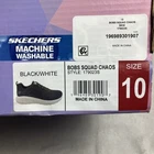 Skechers BOBS Squad Chaos Womens 10 Sneakers Memory Foam Black Comfort Shoes The box is damaged. These shoes are in new condition. Please see pictures for details. Please feel free to contact us with questions. Thanks for your interest.