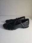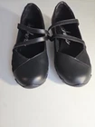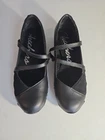 The Skechers Biker Ballerina in size 9.5 is a black flat shoe with a Mary Jane style that features an adjustable hook and loop closure. This athletic shoe from the Skechers brand has a low top shoe shaft style and a slip-on closure for easy wear. It is designed for women and has a standard shoe width, making it suitable for walking and sports activities. Get up and go with style and ease in the Bikers - Mary Jane. Textured knit fabric upper with soft suede overlays at toe and heel. Hook-and-loop strap in a mary jane silhouette. Soft fabric lining. Relaxed Fit design for a roomier fit. Air-Cooled Memory Foam full-length cushioned comfort insole for all-day comfort and support. Shock-absorbing, low-profile midsole. Flexible rubber traction outsole. Imported. Measurements: Heel Height: 3⁄4 in VGUC, the only slight signs of wear are pointed out as slight wear on the top eds of the inside of the heel insole. Worn a few times, lots of life and adventure left in them just waiting for you to adopt them;).