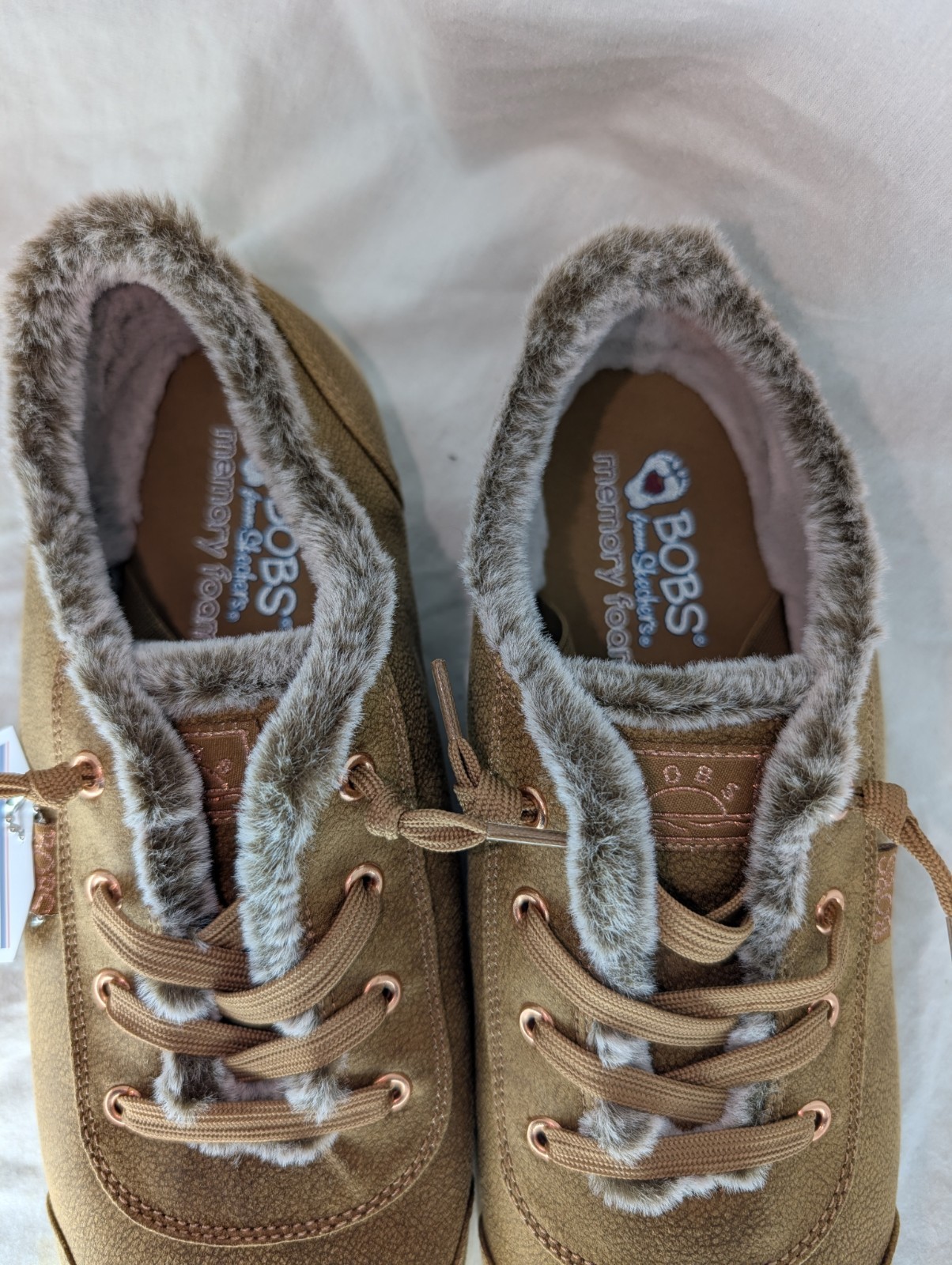 The Skechers Bobs B Cute Fur Light Brown Women's Size 10 Memory Foam shoes are a comfortable and stylish slip-on sneaker perfect for casual occasions. Featuring a memory foam insole for added comfort, these shoes are designed with a low top shoe shaft style and a rubber outsole for durability. The solid brown color and Skechers Bobs B Cute character add a fun and trendy touch to the design. Ideal for all seasons, these athletic shoes from the Skechers BOBS product line are a fashionable choice for women looking for both style and comfort in their footwear.