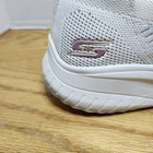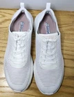 The Skechers Bobs Squad Chaos Women's Sneakers in size 11 feature a stylish design in white and pink color with a memory foam insole for ultimate comfort. Made with mesh fabric and rubber outsole, these sneakers are perfect for activewear or casual occasions. The lace-up closure and low top shaft style make them easy to put on and take off, while the Skechers logo accents add a sporty touch to the shoe. Ideal for all seasons, these sneakers are a versatile option for women on the go.