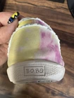 The Skechers Bobs Women's Size 8.5 Tie-Dye Sneakers with Memory Foam are a colorful and stylish pair of athletic shoes. Featuring a standard shoe width and synthetic upper material, these sneakers offer comfort and durability. The memory foam insole provides additional cushioning for all-day wear, while the tie-dye pattern adds a fun and vibrant touch. Perfect for adding a pop of color to your workout or casual outfit, these Skechers Bobs sneakers are a fashionable and functional choice for women looking for both style and comfort in their footwear. These shoes are lightly used with normal wear and tear.