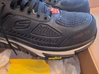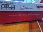 The Skechers Composite Safety Shoe is a men's non-metallic work footwear designed for safety and comfort. With a soft toe shape and slip-resistant outsole, this shoe is ideal for workwear occasions. The lace-up closure and foam insole provide a secure fit and cushioned support, while the rubber outsole ensures durability and traction. Crafted with leather upper material and fabric lining, this black sneaker is both stylish and practical for outdoor use in all seasons. The Skechers brand is known for its quality and reliability, making this shoe a reliable choice for those looking for durable and stylish footwear.
