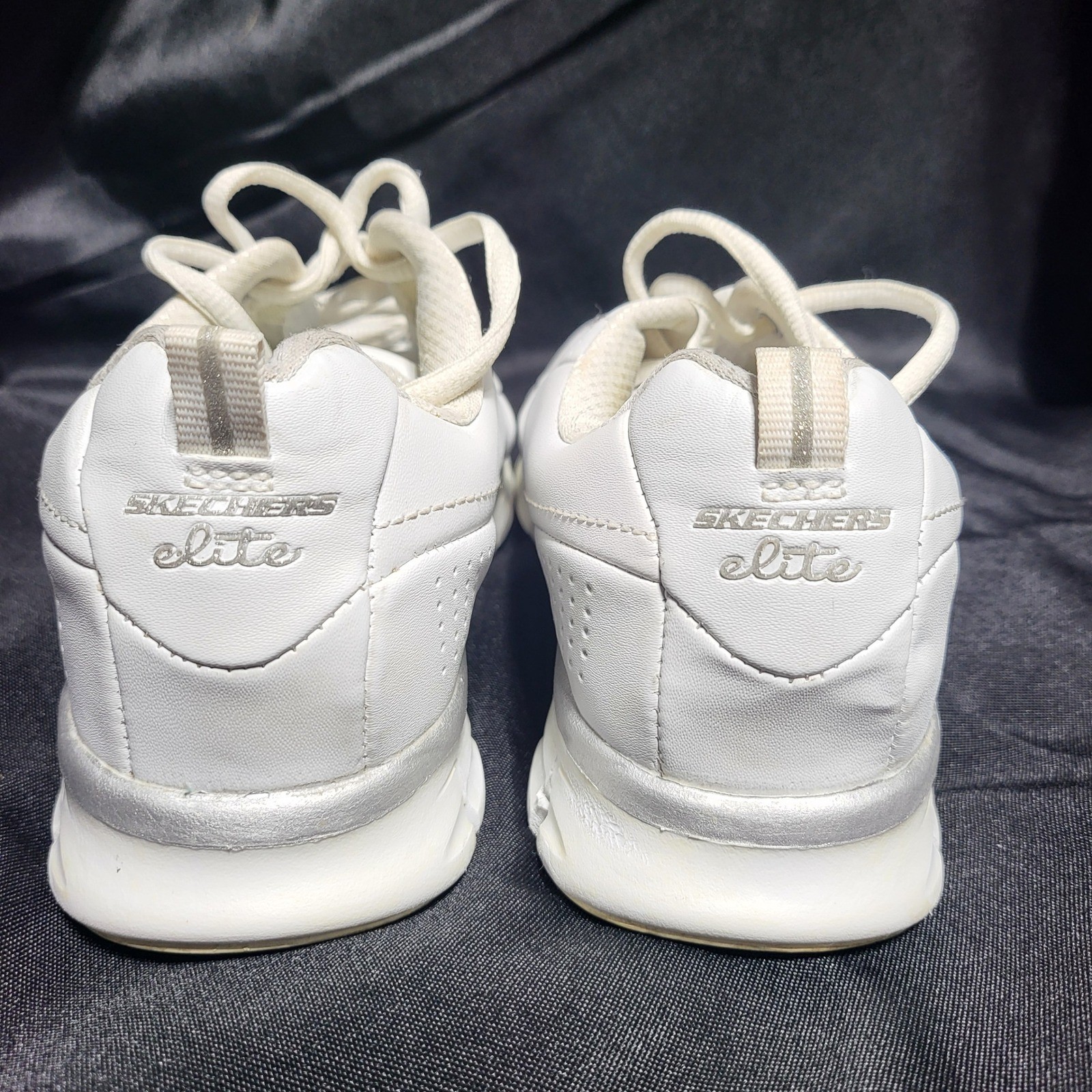 Skechers Elite women's athletic shoes in white. These lace-up shoes feature a comfortable memory foam insole and a supportive athletic design. The exterior showcases the iconic Skechers logo on the side and the Elite branding on the heel. Department: Women UK Shoe Size: 5 Upper Material: Leather Features: Memory Foam, Comfort, Cushioned, Padded, Lightweight Shoe Width: M EU Shoe Size: 38 Performance/Activity: Walking, Running & Jogging Accents: Logo Style: Sneaker Type: Athletic Shoe Shaft Style: Low Top Insole Material: Foam Pattern: Solid Keywords: Skechers, athletic, sneakers, walking, comfort, slip resistant, supportive, lightweight, performance, everyday, active, lace up Thank you for supporting our small business!