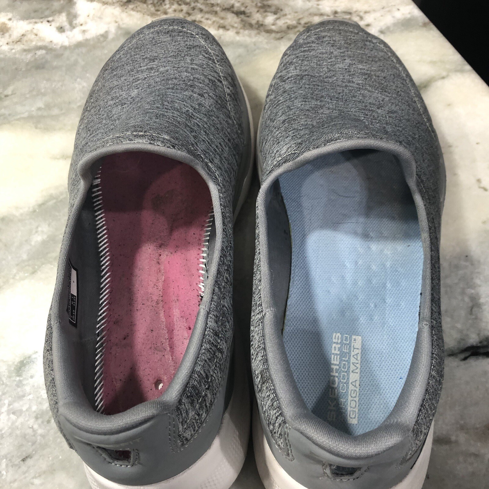 The Skechers Go Walk 6 Grand Horizon Sneaker Shoes in Gray are perfect for women who want to experience both style and comfort. These shoes are made with a synthetic upper material and a rubber outsole, ensuring durability and grip. The cushioned insole and fabric lining provide a comfortable fit, while the breathable mesh fabric ensures your feet stay cool and dry. These sneakers are great for any occasion, whether you're going for a run or just running errands. The shoes come in a standard shoe width and are available in women's size 8, UK size 5, and EU size 38. With the classic and colorful theme, these sneakers are a great addition to any wardrobe. See pics as 1 shoe is missing it’s insole. Shoes have soiled areas due to normal wear.