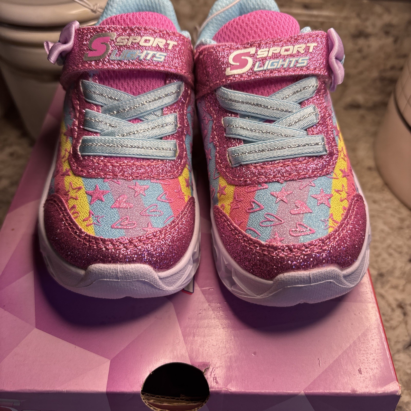 Skechers Sport Lights Kids Pink Unicorn Light Up Shoes Toddler Size 5
