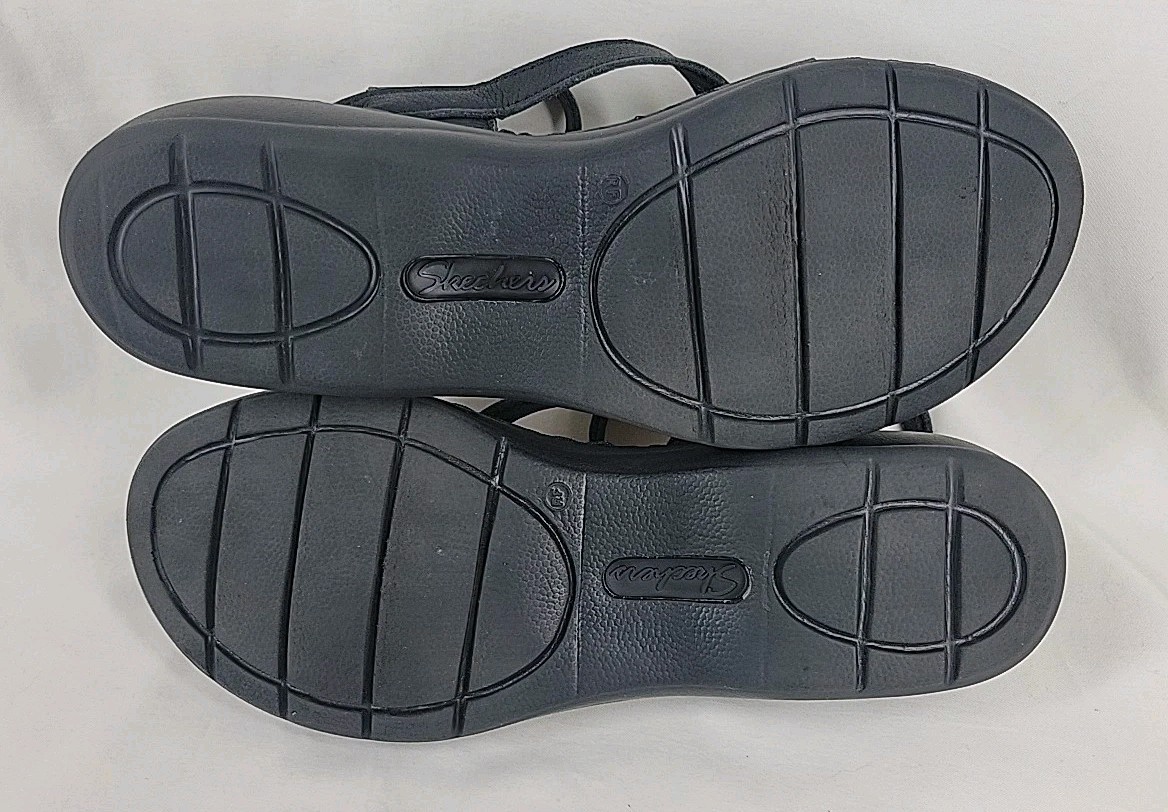 Skechers Luxe Foam Strappy Comfort Summer Sandals Size 7 Black. In excellent condition, normal signs of wear, footbed has distress look, hook and loop closure, wedge platform, please check photos for more details.