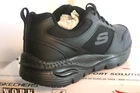 Elevate your work footwear game with these Skechers Men's Arch Support Black Work Shoes. These slip-resistant shoes are perfect for those who work in demanding environments and need a comfortable and sturdy pair of shoes. The shoes feature a low-top shaft style, lace-up closure, and medium width (D, M) for a snug fit. Crafted with synthetic upper material and memory foam features, these shoes provide ample support and cushioning for all-day wear. The shoes are customized with a unique style code of 200373/BLK and are part of the Skechers Work Footwear product line. Suitable for men who wear UK shoe size 11, US shoe size 12, and EU shoe size 46, these shoes are perfect for those who value both style and functionality. Inventory #20241225 bsrcsk 3375-82