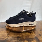 Skechers Men's Sz 10 Paradyme Arche Fit Lace Up Blue Athletic Trainer Shoes are versatile sneakers designed for active wear. Featuring a breathable upper material and a comfortable foam insole, these shoes are suitable for walking, cross training, running, and other athletic activities. The blue color and low top design make them a stylish choice for casual wear as well.