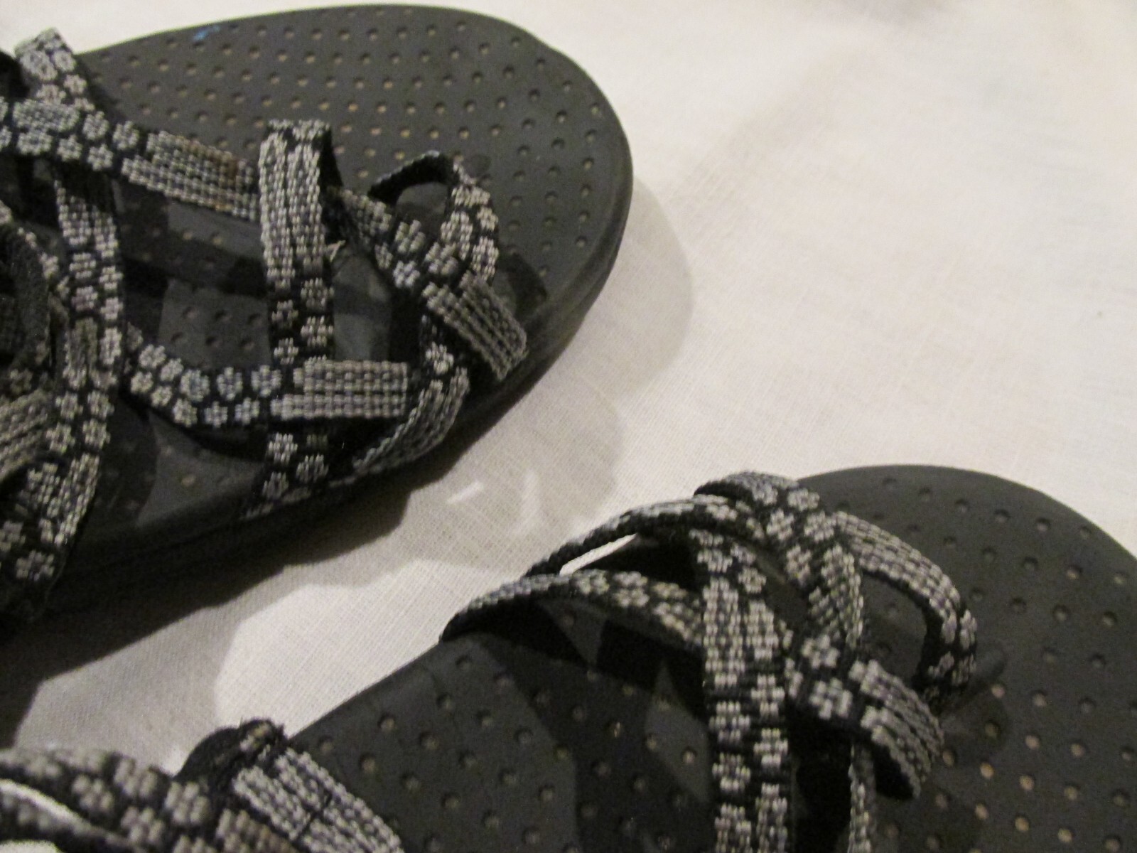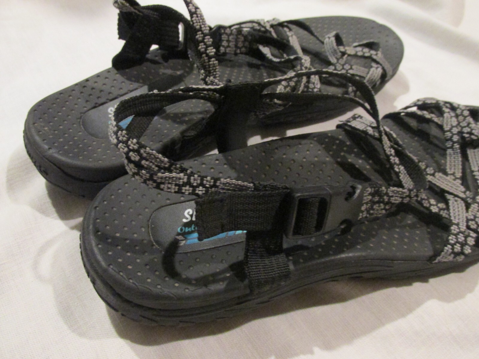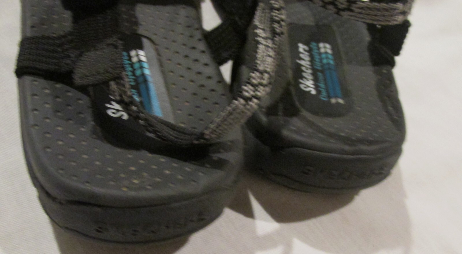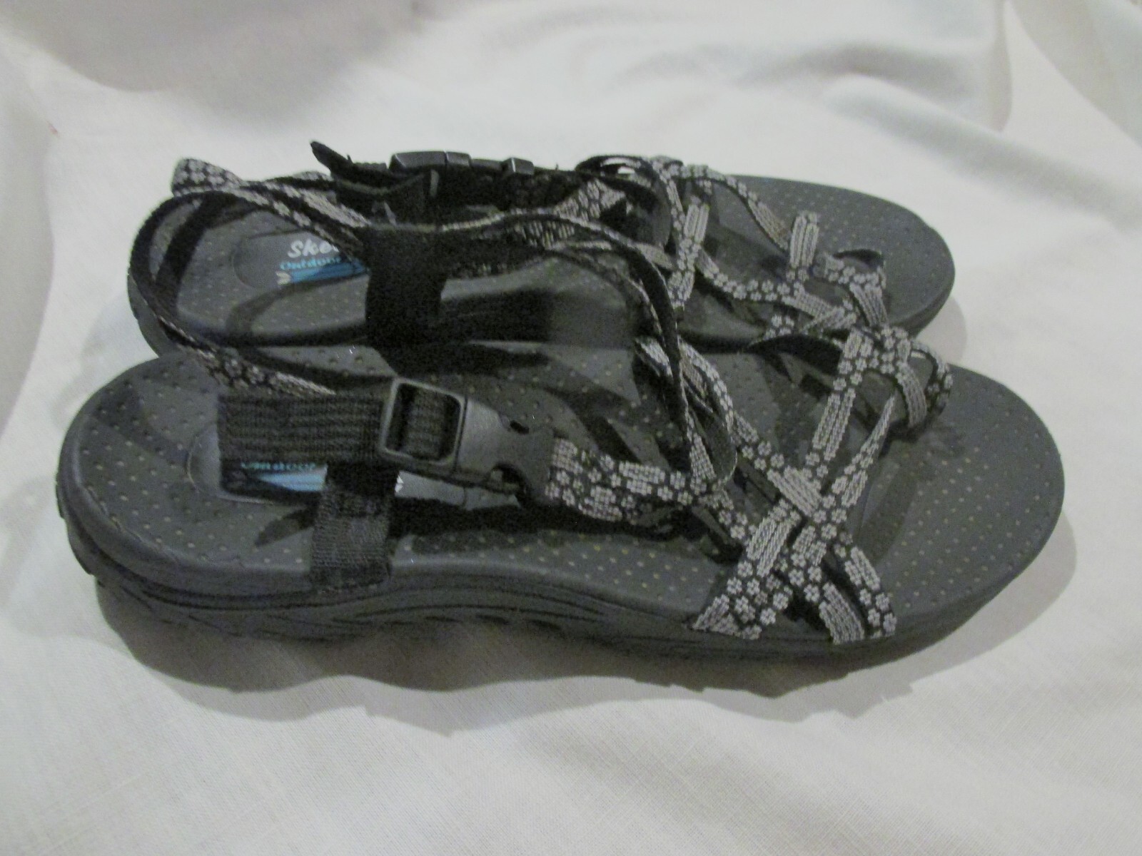 Skechers Reggae Strappy Outdoor Lifestyle Gray Toe Sandals Women Size 91/2-10 Check measurements in pictures. Size is not marked inside shoes.