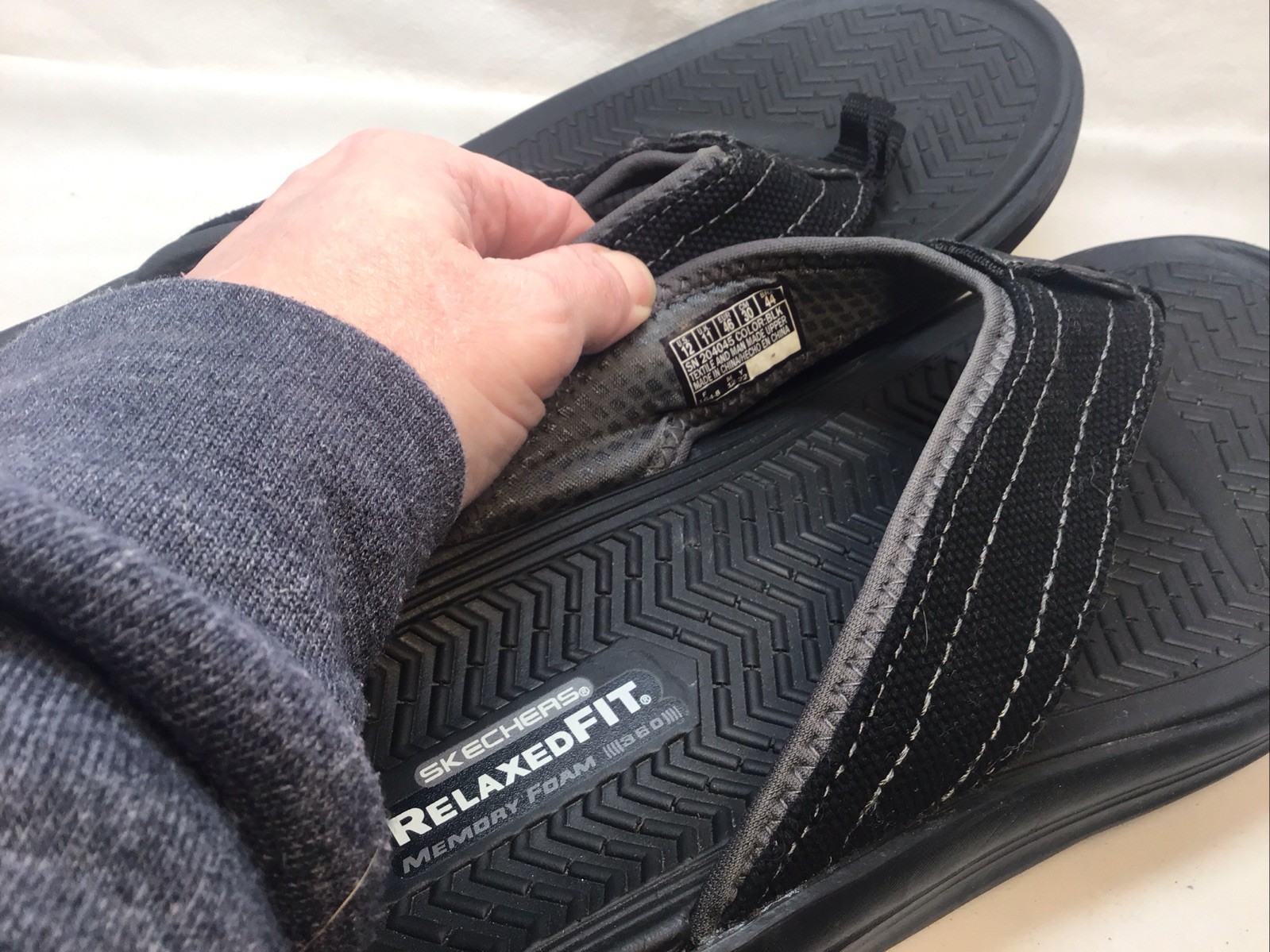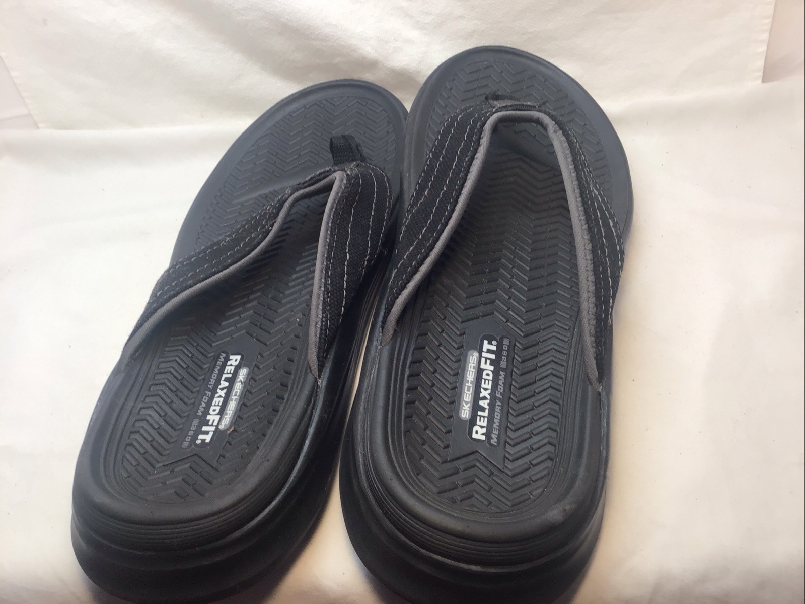 The Skechers Relaxed Fit Men’s Size 12 Black Memory Foam Thong Flip Flops Sandals are a stylish and comfortable choice for casual occasions. These sandals feature a solid black color with a logo accent, a rubber outsole, and memory foam insole for added comfort. The standard shoe width and synthetic upper material make them a practical choice for the summer, fall, and spring seasons. The Skechers brand and relaxed fit design provide a blend of style and relaxation for men looking for a versatile sandal option.
