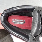 The Skechers Relaxed Fit Steel Toe Black Leather Work Boots are designed for men in size 14 with a standard shoe width. These ankle boots feature a solid black color, lace-up closure, and a round toe shape. The outsole is made of leather and is oil-resistant, making them suitable for work environments. The steel toe provides extra protection, while the Skechers Relaxed Fit ensures comfort for all-day wear. This model, numbered 77009, is part of the Skechers product line and showcases a durable and stylish design for those in need of reliable work boots.