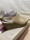 Skechers Sandals Wm 8.5 Parallel Trapezoid Wedge Heel Beige tan Suede Slingback
