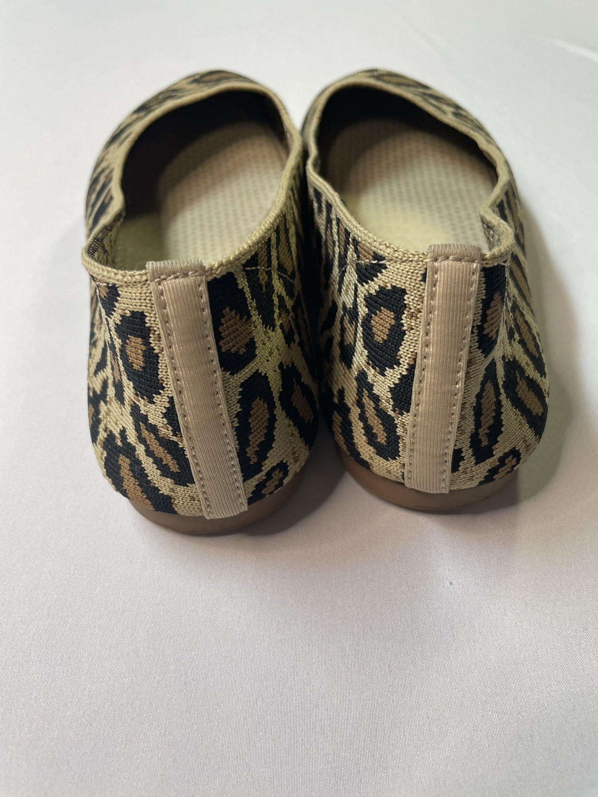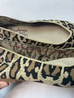 The Skechers Cleo Claw-Some women's flats in size 6.5 feature a stylish leopard cheetah animal print design with a pointed toe and slip-on closure for easy wear. These comfortable flats are made with synthetic upper material and a foam insole for added comfort and support. The breathable knit fabric lining and stretch fit design make them perfect for casual occasions, while the multicolor design adds a fun and trendy touch to your outfit. With the Skechers Memory Foam product line and standard shoe width, these shoes offer both style and functionality for everyday wear.