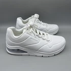 Skechers Uno Stand On Air Shoes Womens Size 7.5 White Air Cooled Memory Foam Lightly worn with minor dirt on outsoles and faint marks on uppers. Insoles clean, air units clear, no major flaws. Brand: Skechers Style: Uno Stand On Air low-top athletic casual shoes with visible air-cushioned heel unit and lace-up front. Color: White (color code W). Gender: Womens. Size on tag: US 7.5, UK 4.5, EUR 37.5, CM 24.5, BRA 36. Style/Model code: SN 155543. Materials: Man-made synthetic upper with perforated detailing, cushioned midsole, and rubber outsole. Features: Air-Cooled Memory Foam insole, padded collar and tongue, perforated toe box for breathability, raised midsole, visible air-cushion heel unit, textured rubber outsole for traction. 0608 All items are bagged and sealed after being photographed, then stored in a smoke free environment to ensure the item is exactly the same as when photographed. I carefully package and ship daily. Feel free to contact me with any questions.