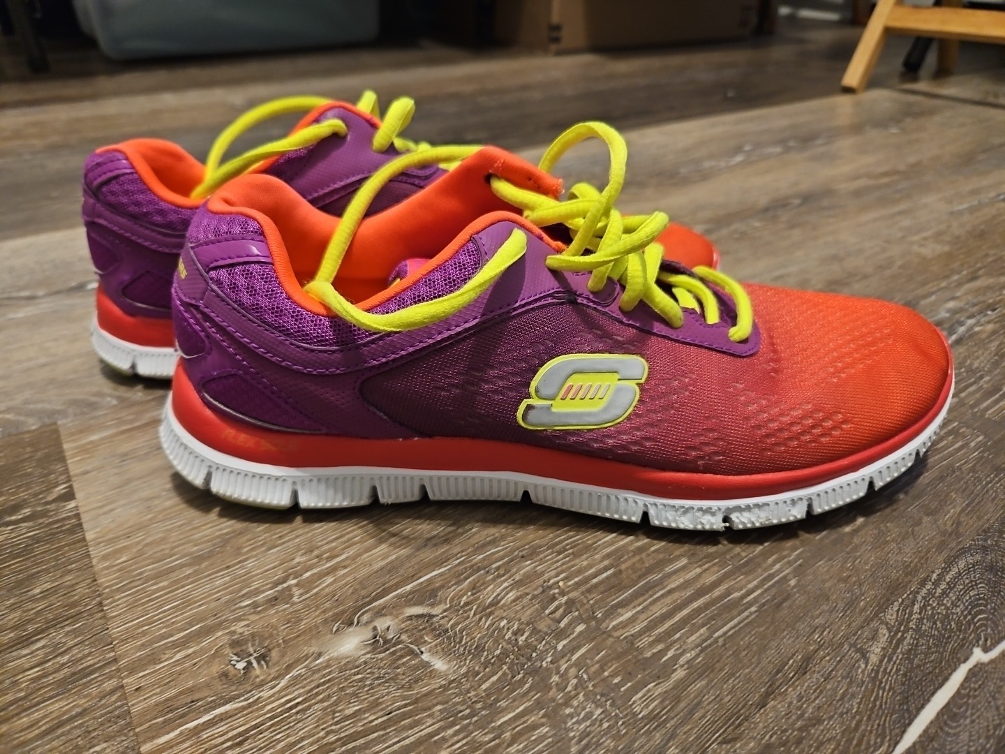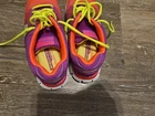 The Skechers Skech Knit Shoes in women's size 9 are a stylish and comfortable option for athletic wear. Designed with a pink and purple color scheme and featuring a memory foam flex sole, these sneakers provide both support and cushioning for all-day comfort. The knit fabric and knitted upper material add a breathable and lightweight feel to the shoe, making it ideal for active individuals on the go. The Skechers Skech model offers a trendy and practical choice for women looking for both style and functionality in their footwear.