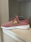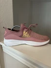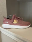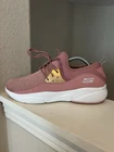 These are women's Skechers sneakers in size 11 with a Meridian Rose design. The shoes feature a lace-up closure, pink color, and synthetic upper material. They are part of the Skechers Memory Foam product line, offering Air Cooled and Memory Foam features for comfort. The sneakers have a solid pattern with a theme of roses, making them a stylish choice for athletic wear.