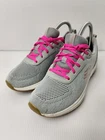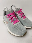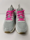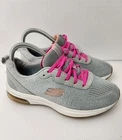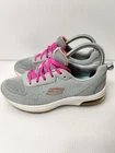 These Skechers Memory Foam sneakers are women's size 6.5 in gray. They are lace-up running shoes with a low-top design. Featuring comfort and breathability, they are perfect for active wear, specifically designed for running. The shoes have a synthetic upper material, fabric insole, and standard shoe width, offering a supportive and comfortable fit for sports activities.