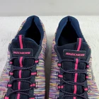 Skechers “Summits – Light Dreaming” slip‑on sneakers in black with pink accents, women’s US size 7.5. Comfortable and lightweight design with memory foam insole for walking or casual wear. Pre‑owned in good condition with typical signs of wear such as slight scuffing or minor sole wear. Please review all detailed photos carefully to see exact condition and any imperfections.