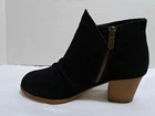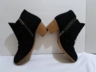 These are a pair of black Skechers Taxi boots in size 7.5 for women. They feature a side zip closure for easy wear and are made of water-repellent suede material. The boots have a mid heel height with a block heel style, providing both style and comfort. This pre-owned pair is in excellent condition, making them a great choice for anyone looking for stylish and functional footwear.
