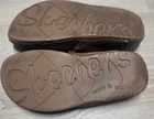 Step up your exercise game with these stylish Skechers Tone Ups Moonrock flip flops! These pre-owned sandals feature slip-on closure, low wedge heel, and synthetic outsole for comfort and durability. The brown suede leather upper with solid pattern adds a touch of elegance, while the synthetic insole provides toning benefits for your feet. The Skechers Tone Ups product line is known for its quality and reliability, making these flip flops a great addition to your shoe collection. Available in US shoe size 6 for women.