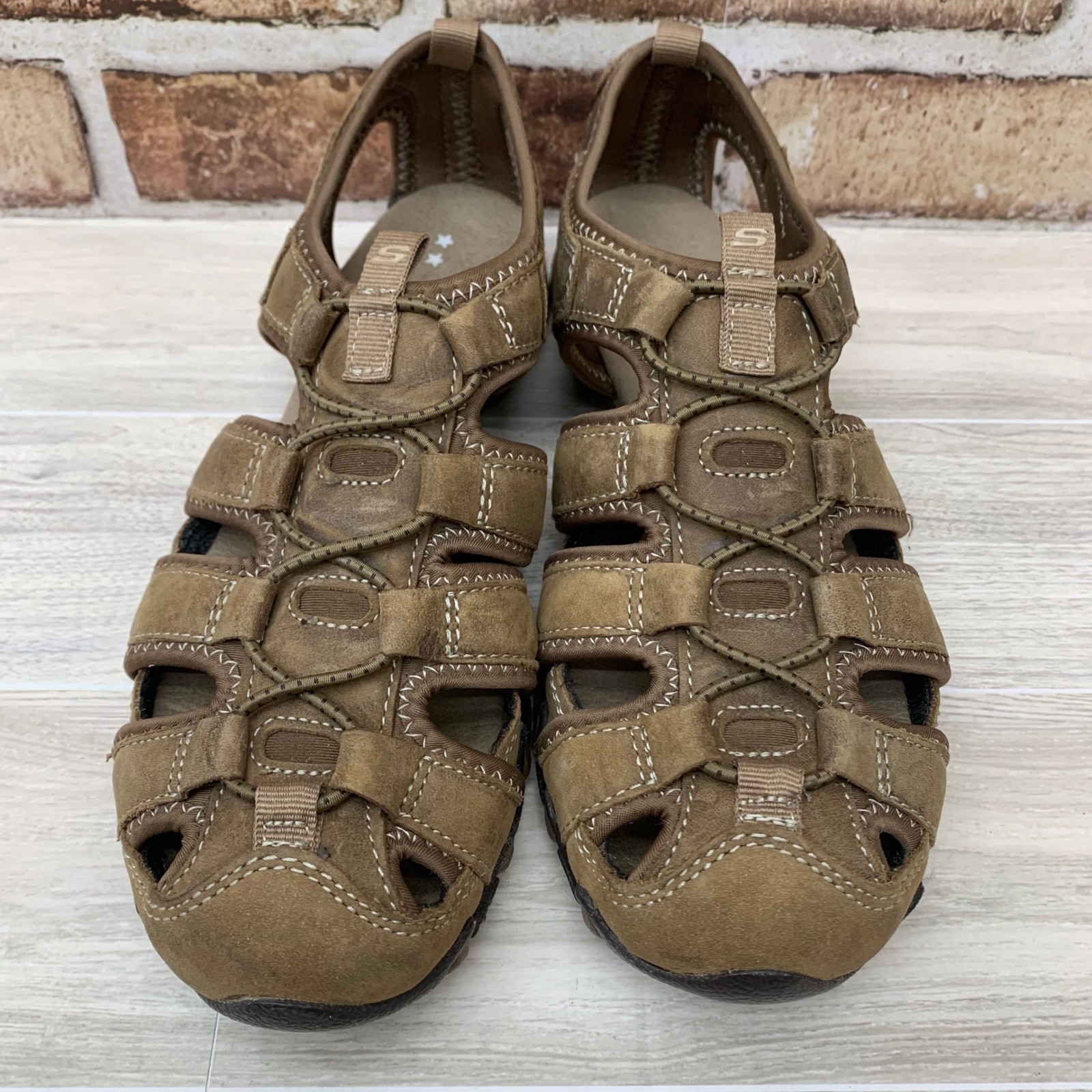 Style: Fisherman Upper Material: Leather Heel Style: Flat EU Shoe Size: 38.5 Features: Cushioned, Straps, Adjustable Strap, Comfort, Breathable Closure: Hook & Loop Pattern: Solid Accents: Logo, Straps Heel Height: Flat (Under 1 in) Type: Sandal Keywords: fisherman sandals, sport sandals, leather sandals, adjustable strap, outdoor, walking sandals, summer shoes, comfort footwear, casual sandals, strappy sandals, brown sandals, womens footwear