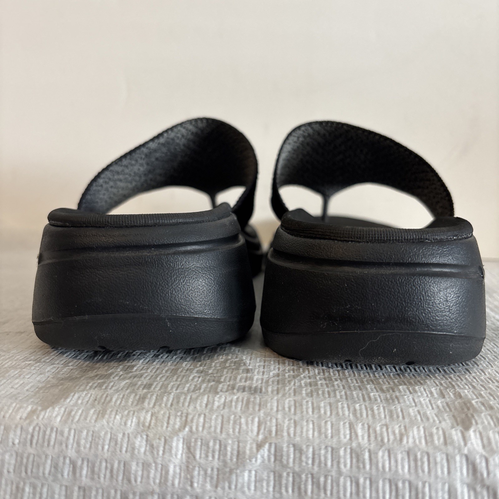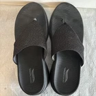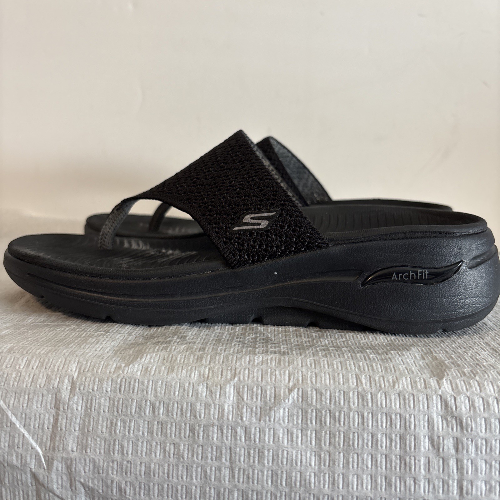 The Skechers Women's Go Walk Arch Fit Thong Sandals in Ultra Go Black, size 8 are designed for casual occasions with a slip-on closure for easy wear. These sport sandals feature arch support, cushioning, and an adjustable strap for comfort and convenience. The rubber outsole provides traction, while the foam insole ensures a secure fit. Perfect for summer, fall, and spring, these Skechers sandals are a stylish and functional choice for active women on the go.