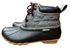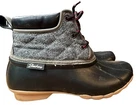 Get ready to hit the great outdoors with these stylish and comfortable Skechers Women's Pond Lil-Puddles boots. These ankle boots feature a round toe shape and lace-up closure, making them perfect for travel, activewear, casual outings, and workwear. The boots come in a solid black color with gray accents and a block heel style. Made with a blended fabric and rubber outsole material, these boots are waterproof, cushioned, breathable, and comfortable. The insole material is made of foam, providing extra comfort and support. The Skechers Pond Duck Boots product line is perfect for those who love outdoor activities and want a stylish and functional shoe to wear for all their adventures.