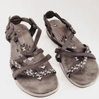 WE APPRECIATE OUR CUSTOMERS THANK YOU FOR SHOPPING WITH US!! Skechers Womens Sandals US 11 Reggae Slim Vacay Strappy Mem Foam Black Gray Elevate your style with these Skechers Reggae sandals in black and gray. The slip-on strappy design is perfect for any occasion, whether you're running errands or going out with friends. The memory foam insole provides ultimate comfort, while the synthetic upper material ensures durability. These sandals are perfect for women who want to add a touch of sophistication to their wardrobe. The geometric pattern adds a unique touch to the overall design, and the Skechers brand name guarantees quality. Get ready to step out in style with these Skechers Reggae sandals. *Please look at pictures as they are part of the description/details. *Good Preowned Condition *Thanks for looking! Please remember items listed as vintage or used will typically show age appropriate wear. I have provided lots of photos for you to see the general condition of each item. If you would like any further photos or information, please contact me and I will be happy to try and help. I do my best to describe items accurately. Pictures are considered part of the description. Cameras and/or computers can sometimes slightly alter colors. Any measurements should be considered approximate. If you need an exact measurement, please ask. Terms and Conditions : Once a purchase has been made, it is legally binding contract. Payments: Payment is due when purchase is made, Thank you for your prompt payment. *If payment is not received within 4 days of purchase, then a Non-Paying Buyer Dispute will be filed, and eBay may mark it against your account. SHIPPING: We ship daily (Mon-Fri not to include holidays) and will ship within two business day of receiving payment! I do accept returns if you are unhappy with your item for any reason. I ask that it be returned in the original condition you received it in. I take pride in shipping items carefully. However, if an item arrives damaged, please contact me immediately. All shipping materials (box, poly bag, bubble wrap, paper, etc.) must be kept, as well as it is necessary to take 7 pictures to document exterior damage of the box, as well as the interior damage of the item(s) that was purchased. This documentation is required to file a damage claim with both USPS and UPS. Upon Receiving : If you are satisfied with your product(s), please leave some positive feedback. *We love hearing that you have received your purchase(s), and are content, delighted, and untroubled. *Once you receive your purchase(s), please inspect them for any damage during transit. Report any damage within 24hrs via eBay e-mail. Return Policy : You may return unworn, unwashed merchandise in its original condition with all tags attached. If you bought a brand-new item, it MUST be returned brand new (Sealed and Any returns MUST be sent back to us complete and in the same condition as delivered to you Unopened). Items must be in new or original condition (free of odor, markings etc.) and ready for resale. Any serial or product numbers must match the purchased item for refund. PLEASE NOTE that shipping will not be refunded . Upon time of purchase, you are agreeing to this return policy. CHECKOUT: Please make sure that your address on file with eBay is complete and correct as we must use the address you have with eBay. *If you have any questions about your purchase, delivery, or a possible product return; Please contact us immediately and directly through your eBay accounts message center! *We are Eco-Friendly, leaving the lightest possible impact on our environment! Whenever possible we will reuse packing material to aid with our Eco goals. Customer service and feedback: If you have any questions about your purchase, delivery, or a possible product return; Please contact us immediately and directly through your eBay account message center! Your satisfaction is our top priority! Our goal is to earn your 5-star 100% feedback. Thank You for buying from us!
