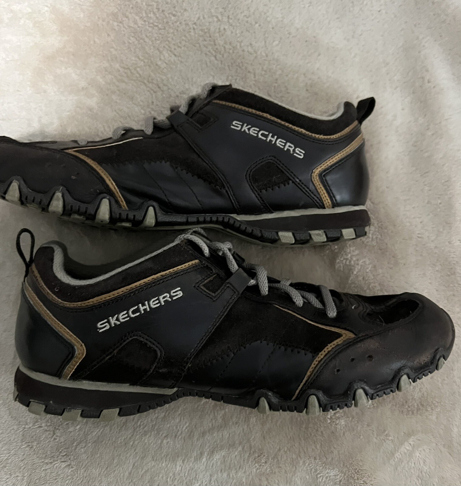 Elevate your style with these trendy Skechers fashion sneakers in size 8M for women. The brown leather material and lace-up closure provide a comfortable and chic fit. The 13.5" shaft height adds to the overall sleek look of the shoe, while the M width ensures a perfect fit for most wearers. The SN21434 style code and 46416 model number make these sneakers a unique addition to any wardrobe. Whether you're running errands or going on a casual date, these athletic shoes are versatile and fashionable. Don't miss out on the opportunity to own a pair of these SKECHERS sneakers. *Some scuffing on toes shown in pictures*