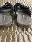 The Skechers Women's Size 9 Outfit Lifestyle Slip On Sandals in blue are perfect for any casual occasion. With a flat heel and adjustable strap, they offer comfort and convenience. Whether you're traveling, hiking, or just lounging by the pool, these sandals are versatile and stylish. The Skechers brand is known for its quality and outdoor lifestyle designs, making these sandals a reliable choice for the summer, fall, and spring seasons.