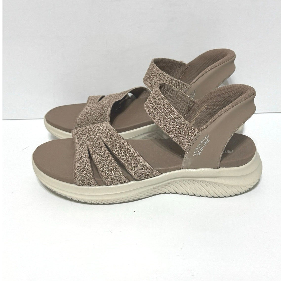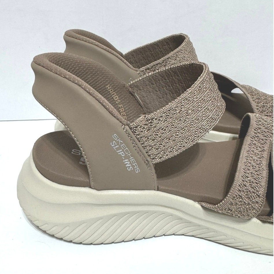 Skechers Women’s Slip-ins Washable Knit Ultra Flex 3.0 Sandals Size 8 Mocha Preowned in excellent condition There are no stains, rips, or holes Could be mistaken for never worn Style: Pretty Combo Hands-free Slip-ins style, stretch crochet-knit upper, Yoga foam cushioned footbed, Heel PillowTM, Ultra Flex 3.0 outsole Approximately 1-3/4"H sole Fit: true to size Textile/man-made upper Machine washable PETA-certified Vegan Shipped within one business day