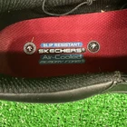 This is a pair of men's Skechers slip-on casual shoes in black, featuring the Rockrath model from the Skechers Relaxed Fit product line. The shoes are designed to be slip-resistant and have a synthetic upper material. They are in US shoe size 10 and are ideal for work environments requiring slip-resistant footwear. SKU- E3 Date- 02/05/25 Listed by-LM Condition- NWB Shade/size- 10/ black Inspected to the best of our abilities and looks to be in good condition. **Item has sticker for SKU purposes**