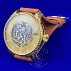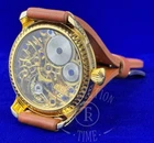 Exclusive "Marriage" watch - a masterpiece of watchmaking art where vintage movement gets new life in a modern case. Each piece is hand-assembled with attention to detail. These aren't just watches, but history reborn through skillful fusion of different eras. WE CAN CREATE UNIQUE CUSTOM WATCHES FROM SCRATCH ACCORDING TO YOUR DESIGN IN A SINGLE PIECE. Message us! Want to participate in creating your unique skeleton watch design? Share your ideas and after careful work, we'll present you with your unique design. Unique silver-plated dial with blackening and gold plating. Skeletonization with architectural element (gargoyle). Hands made using a punched stamp. Skeletonized watch movement with hand engraving and gold plating. Engraved and gold-plated case. Tribute to medieval architecture. Gothic elegance in every detail. CASE : Stai nless steel with PVD coating (titanium nitride); STRAP : Included, black with metal chrome buckle , 22mm, genuine leather; SIZE : Diameter: 46mm; Width with a crown: 51.33; Thickness: 12.8mm; CRYSTAL : Mineral glass front and back; SHIPPING : Within 2 business days after payment; PAYMENT : According to eBay rules; RETURN POLICY: If you are not completely satisfied with your purchase, return the item within 30 days of receiving your watch for an exchange or refund. Buyers with zero rating require prior approval. At the heart of all our watches are vintage movements manufactured since the 1890s, averaging around 100 years old. All movements installed in watches have been restored by our experienced craftsmen. Complete servicing and careful restoration give them new life. Antimagnetic steel case protects this masterpiece. The designer dial is adorned with cold jeweled enamel, each hand perfectly fitted by a master. SPECIFCATIONS: Mineral crystals (sapphire installation possible); Handcrafted genuine leather strap; Custom dial design available; All dials are on feet. ADDITIONAL SERVICES: 1) Replacement of mineral crystal with sapphire one: Starting from $60 for front crystal (from 38mm) Starting from $40 for back crystal (from 37mm) Crystal diameter varies for each watch, please inquire via private message for exact cost. 2) Custom engraving available on case back. Clarify the price in the message. 3) You'll receive the watch in an exclusive branded wooden box - perfect for a WOW effect gift! About us: Extensive experience in creating skeleton watches since 2011. Each design is crafted by masters of their craft, investing experience, knowledge, and soul. IMPORTANT CARE RECOMMENDATIONS: Not water-resistant, keep away from moisture; Avoid bumping or dropping the watch; Wind carefully without excessive force; Set time clockwise only; Keep away from magnets; Service every 2-3 years; Acceptable daily rate variation ±3 minutes.