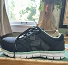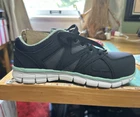 Elevate your workwear game with these Sketchers Alloy toe shoes. Designed with a navy blue and mint green color scheme, these sneakers are perfect for women who want to add a pop of color to their wardrobe. The lace-up closure ensures a secure fit while the memory foam insole provides comfort all day long. These shoes are perfect for anyone who wants to combine style and comfort in their footwear. Whether you're heading to the office or working outside these Sketchers Alloy toe shoes are a great choice. With a US shoe size of 6, these sneakers are perfect for women who want to make a statement with their footwear.