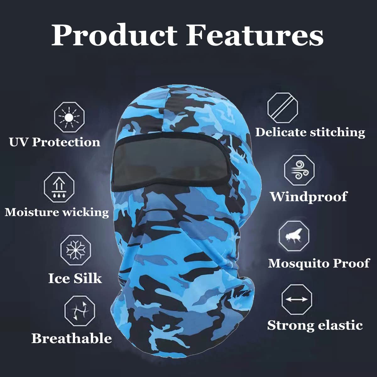 【MULTI FUNCTIONAL】Unique multifunctional design, can be use as many styles: balaclavas, ski masks, face masks, neck gaiters, bandanas, helmet liners. summer cooling, and quick drying, wrinkle free. Unisex style, suitable for men and women. 【GOOD PROTECTION】 Ski mask can provide full protection for your head and face from wind, cold, UV rays, dust and mosquito for various occasions in winter or summer. 【ULTIMATE EXCELLENT FABRIC】 Made of 100% good polyester fiber cloth material: very comfortable, breathable, lightweight, strong elasticity. Remain soft and silky for skin to the touch as it brings comfy. 【VERY PRACTICAL】 Suitable for various outddor activities, such as skiing, snowboarding, motorcycling, fishing, running, climbing, hiking, tactical training. 【COOL DESIGN】 Designed in a cool style which is suitable for men, women and even children, big open area on eyes without blocking sight.