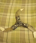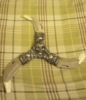Tomahawk 3 bladed knife with a skull on it on both sides of the knife